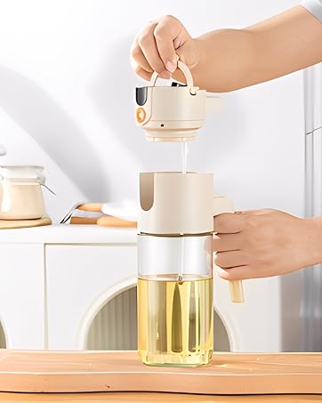 2 in 1 Oil Dispenser for Kitchen Gadgets: The Oil Dispenser Bottle is Versatile and can be Used for Stir-Frying, Making Salads, Air Frying, Grilling Meat and more. And it is suitable for Various Liquids, for example Soybean Oil, Olive Oil, Peanut Oil, Cooking Wine, etc.