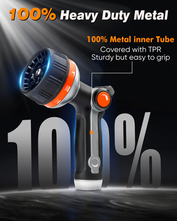 Heavy Duty Metal Hose Nozzle: The hose nozzle is made of premium zinc alloy with TPR coating and rubber dial, which is durable, rust-proof and corrosion-resistant, it is solid & strong to resist daily drops and shocks to fully meeting your outdoor needs