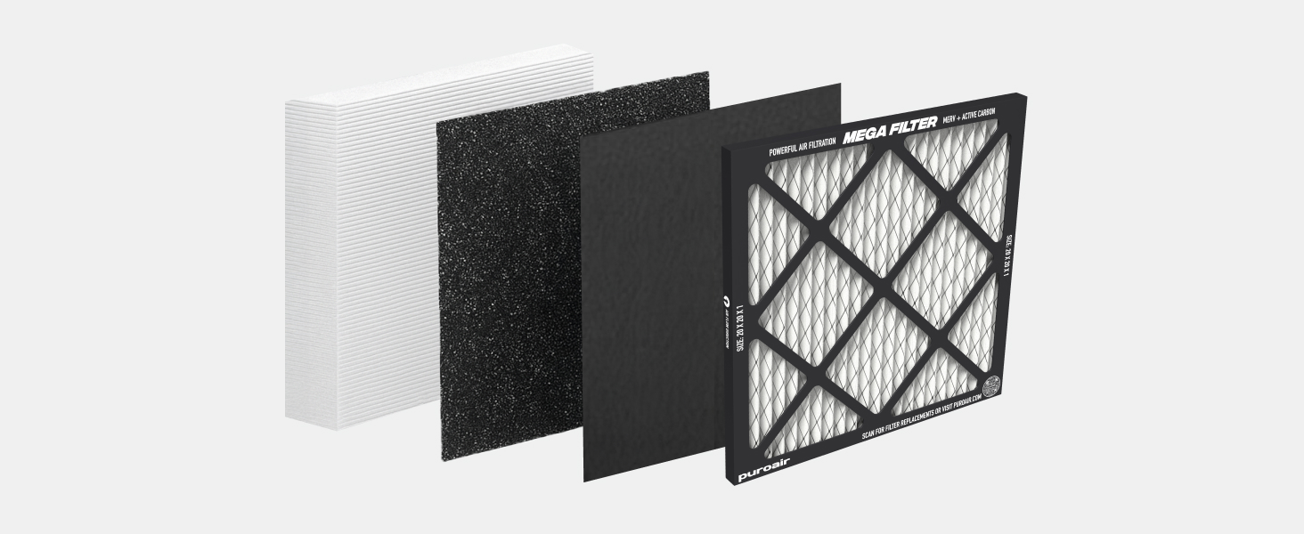 POWERFUL FILTRATION: PuroAir Mega MERV 13 20x20x1 air filters feature a powerful 3 layer design, including a prefilter, a MERV 13 filter, and CarbonTech Active Carbon technology to filter particles up to 200X smaller than a human hair.* (Based on independent lab testing and typical MERV 13 and active carbon filtration performance, 2024.)