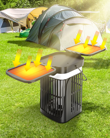 Child and Pet Safety: The indoor bug zapper uses no attractants, or sprays. The electrified grid is securely enclosed to prevent accidental contact, ensuring maximum safety for children and pets. Compact and portable (8.8”*5.5”*5.5”), this mosquito trap outdoor covers up to 2,100 sq. ft. and effectively targets mosquitoes, flies, gnats, and moths. Perfect for patios, backyards, gardens, porches, bedrooms, kitchens, and camping, this outdoor bug zapper solar provides a quiet, bug-free night.